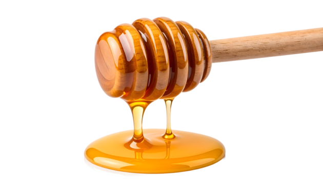 Photo of honey dripping from a wooden dripper isolated on transparent background.png