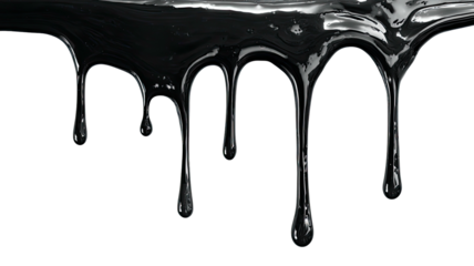 Black spray paint drips isolated on transparent background for graphic design use