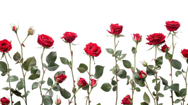 Bright pink rose flower with leaves and water drops isolated transparent png