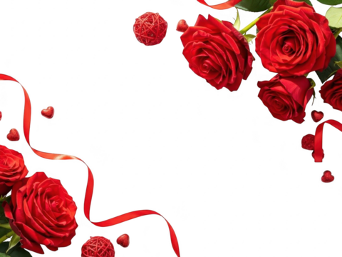 A beautiful arrangement of red roses and ribbons on a transparent background