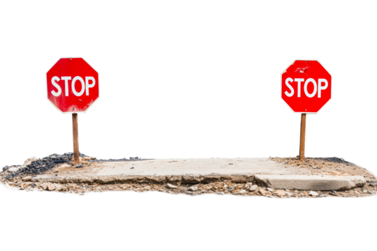 Urban road safety installing stop signs in concrete landscapes isolated on transparent background