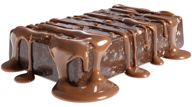 A pile of delicious caramel candies drizzled with extra caramel sauce, isolated on a transparent background
