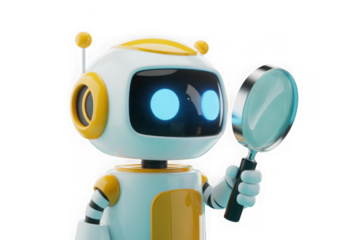 Cute futuristic robot fox 3D render with glowing blue eyes isolated PNG with Transparent Background
