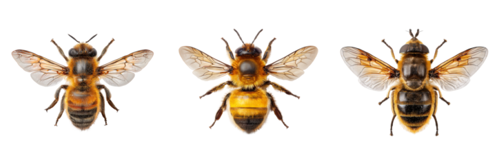 Set of High-quality macro shot of a drone bee, isolated on white background, top-down perspective on transparent png background. Ai generated