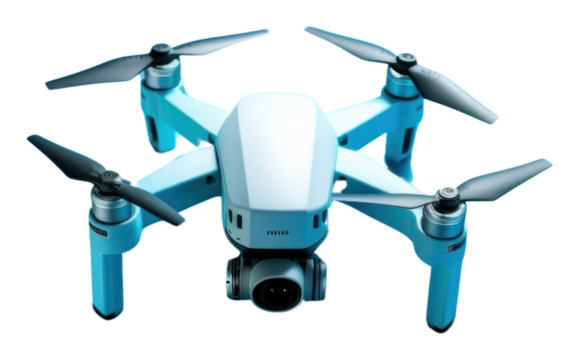 Modern drone featuring rear-facing camera, perfect for aerial photography, surveillance, or tech-themed visuals. Isolated on white or transparent background. PNG