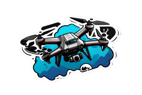 A small drone, flying in the air, small drone, floating in the air, small drone, a small drone floating in the air, a moment of a small drone flying in the sky, on a transparent backgrounds