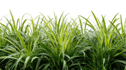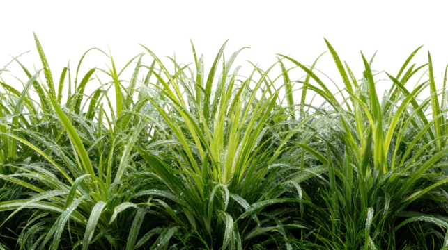 Fresh green grass blades featuring water drops and morning dew, symbolizing freshness, growth, and nature on a transparent background