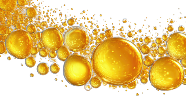 Various drops and puddles of golden honey or syrup, isolated on a clean white background, top view,