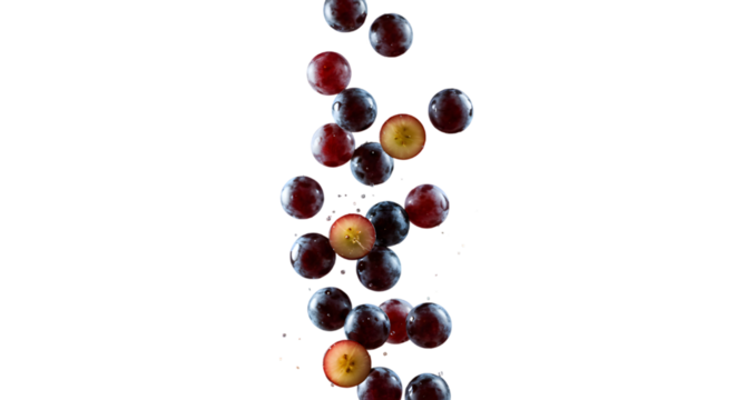Black or dark red grape in water splash isolated on transparent background.