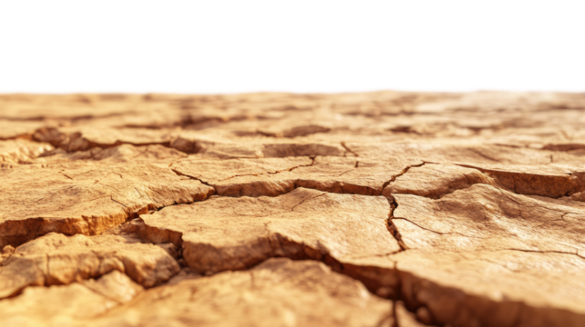Dry cracked earth representing drought, global warming, and climate change with transparent background