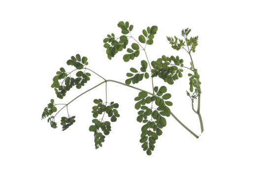 Moringa Oleifera Branch with Green Leaves on Transparent Background