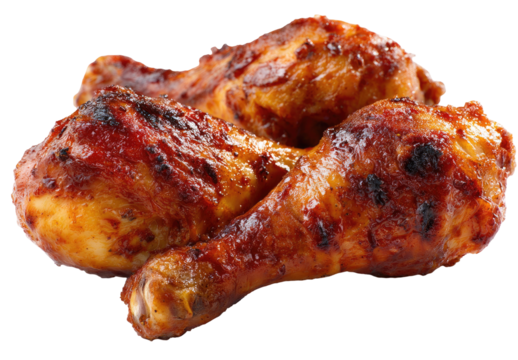 Grilled chicken leg, drumstick isolated on a transparent background, Grilled chicken leg, drumstick isolated on white background.