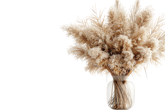A Vase Filled With Dry Grass. A clear glass vase filled with dried grass stands. The dried grass is neatly arranged within the vase.