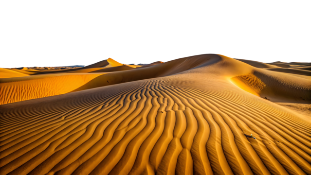 Panoramic view of majestic desert sand dunes on transparent background