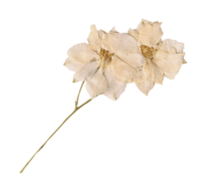 White Dried Delphinium Flowers Botanical Clipart. Pressed Floral Element for Scrapbooking and Collages