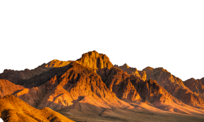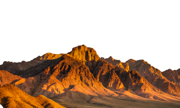 Desert landscape with rugged mountains and rolling sand dunes cut out on transparent background