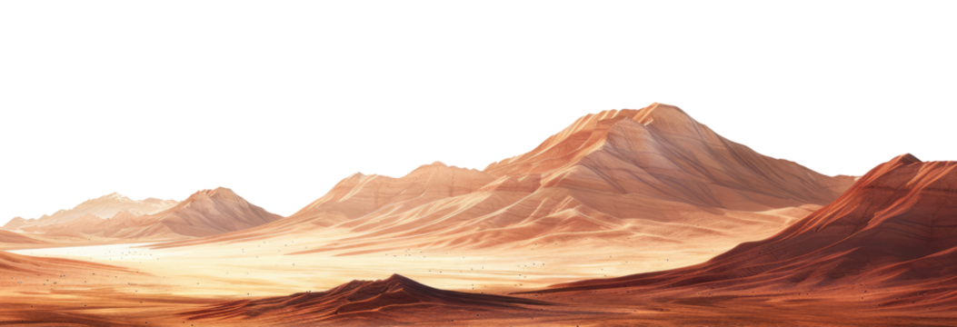 Sand dunes and mountains landscape isolated on white