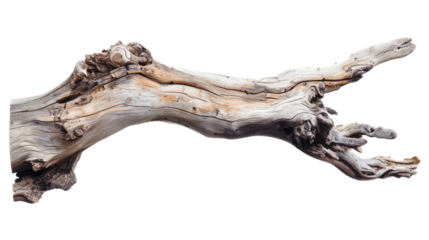 Tree dry branch. Dry stick natural decoration. Big tree beautiful curved branch element isolated on transparent background