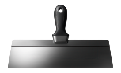 Wide spackle knife with a 12-inch stainless steel blade for drywall applications.