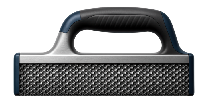 Rectangular drywall rasp with a coarse-grit metal surface for smoothing edges on construction sites.