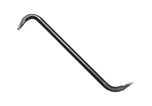 Angled View of a Steel Crowbar with Dual Curved Ends