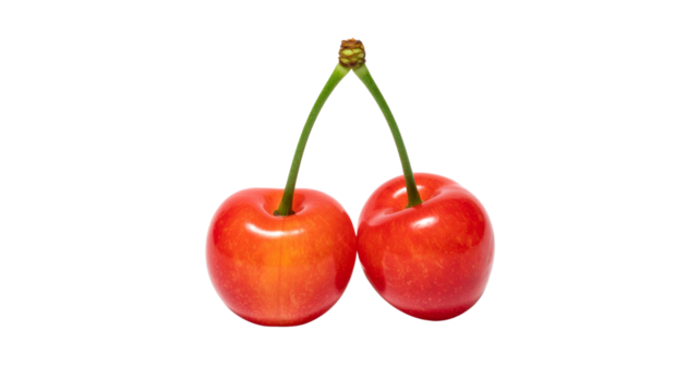 Untitled design - Dual Variation Set of Ripe Red Cherries with Green Stems, isolated on transparent background