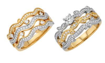 Dual-Tone Gold Silver Diamond Rings with Leaf Motif and Wave Design – Elegant Jewelry for Engagement or Fashion
