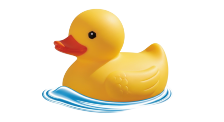 Yellow rubber duck toy on a transparent background, representing childhood fun, bathing, and leisure