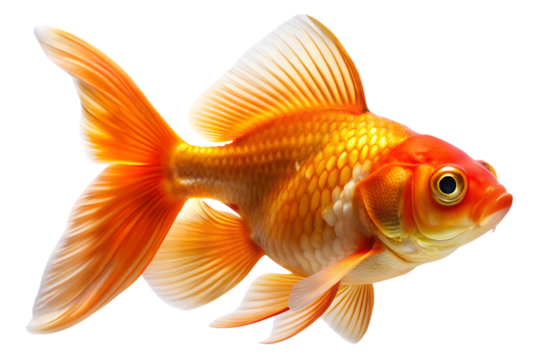 Bright Orange Goldfish with Detailed Fins Isolated on Transparent Background