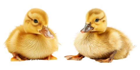 Cute fluffy of little ducks lay down on floor isolated on background, animal for farming set.