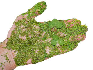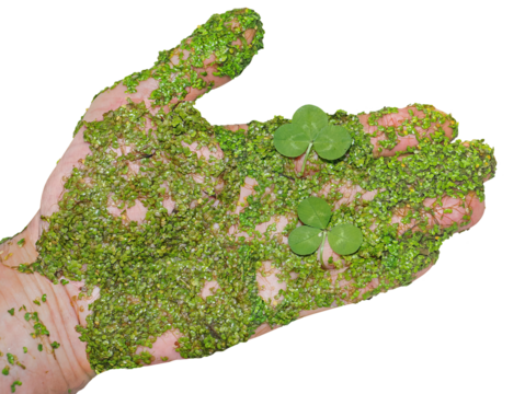 Duckweed creating a dense green mat on the water surface, showing many small floating leaves. Transparent background