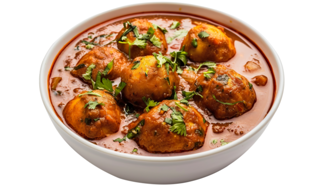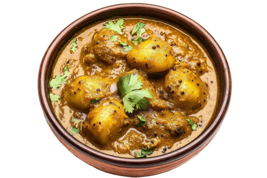 Aloo Dum Recipe Indian Potato Curry Dish Spicy Potato Balls in Gravy isolated on transparent background