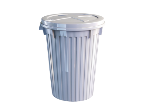 White plastic trash can with lid, 3d rendering isolated on transparent background
