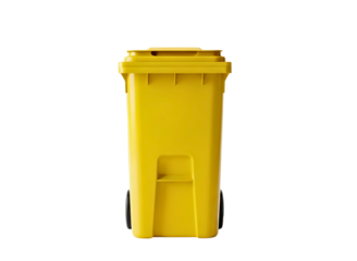 Orange commercial dumpster with wheels isolated on white background, ideal for waste disposal and recycling projects