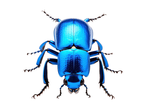 A Set of Gleaming Blue Dung Beetles with Metallic Exoskeletons Isolated on Transparent Background