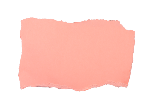 Un morceau de carton brut rose et déchiré sur un fond transparent. Un espace de copie.