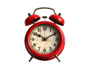Red alarm clock PNG isolated on transparent background, classic twin bell clock for time management and reminders