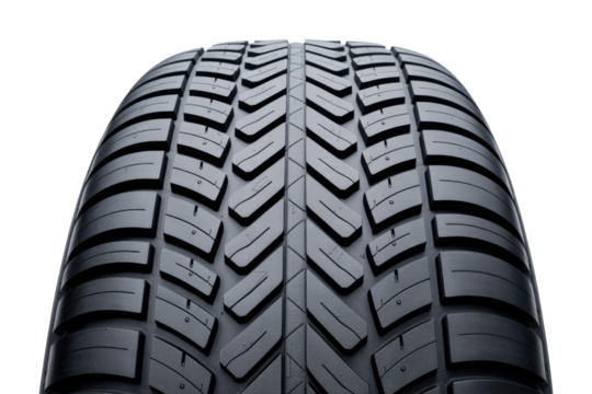 Close-up view of a car tire tread pattern, showcasing its detailed texture and design. background removed