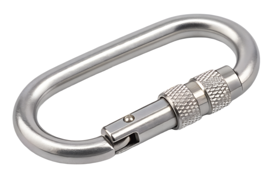 Stainless steel quick release hook, studio background, industrial use