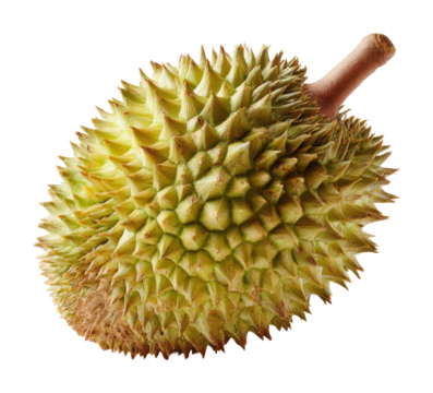 Single Durian Fruit with Sharp Spikes, Tropical Asian Fruit, Culinary Ingredient, Exotic Food, Isolated