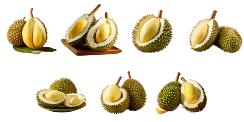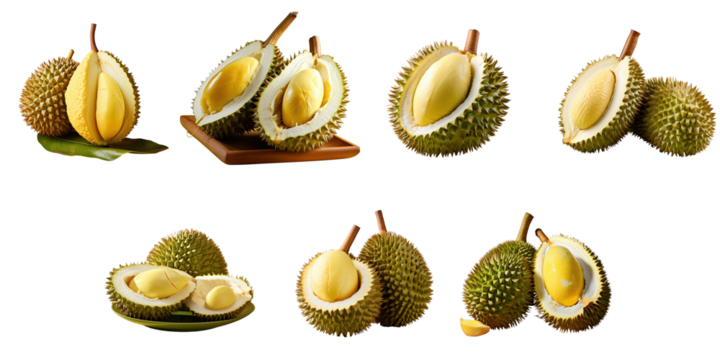 Png Set Fresh durian fruits isolated on a transparent background