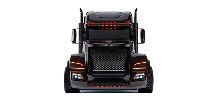 Sleek and Modern Black Semi-Truck Design with Illuminated Details on Black Background