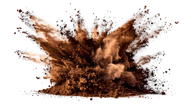 Colorful powder burst from yellow bowl with transparent background