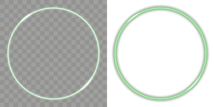 Blue neon circle frame with glowing light effect creating a modern abstract border isolated on transparent background