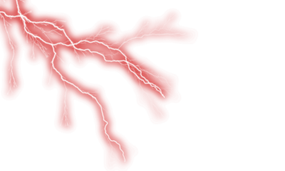 Red lightning bolt with stylized flash effect on transparent