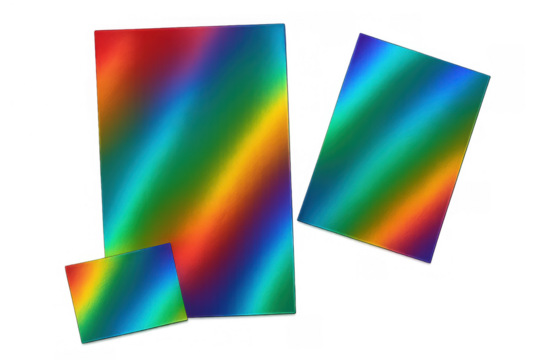 Abstract iridescent shapes with a bright rainbow metallic holographic gradient texture on a transparent background