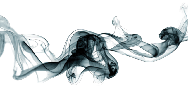Abstract flowing wisps and clouds of light and dark smoke against a transparent background