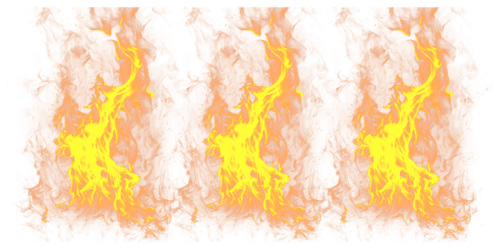 A vibrant and dramatic illustration of three identical flames on a transparent background