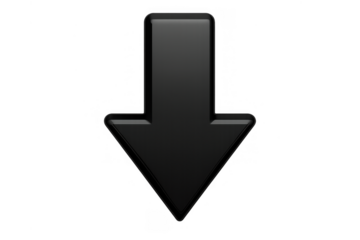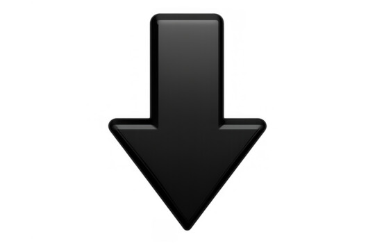 Black arrow icon pointing down, indicating download, direction, navigation, or progress, with transparent background