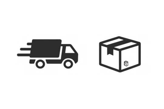 Fast delivery truck and package box icons representing global shipping logistics and commerce service